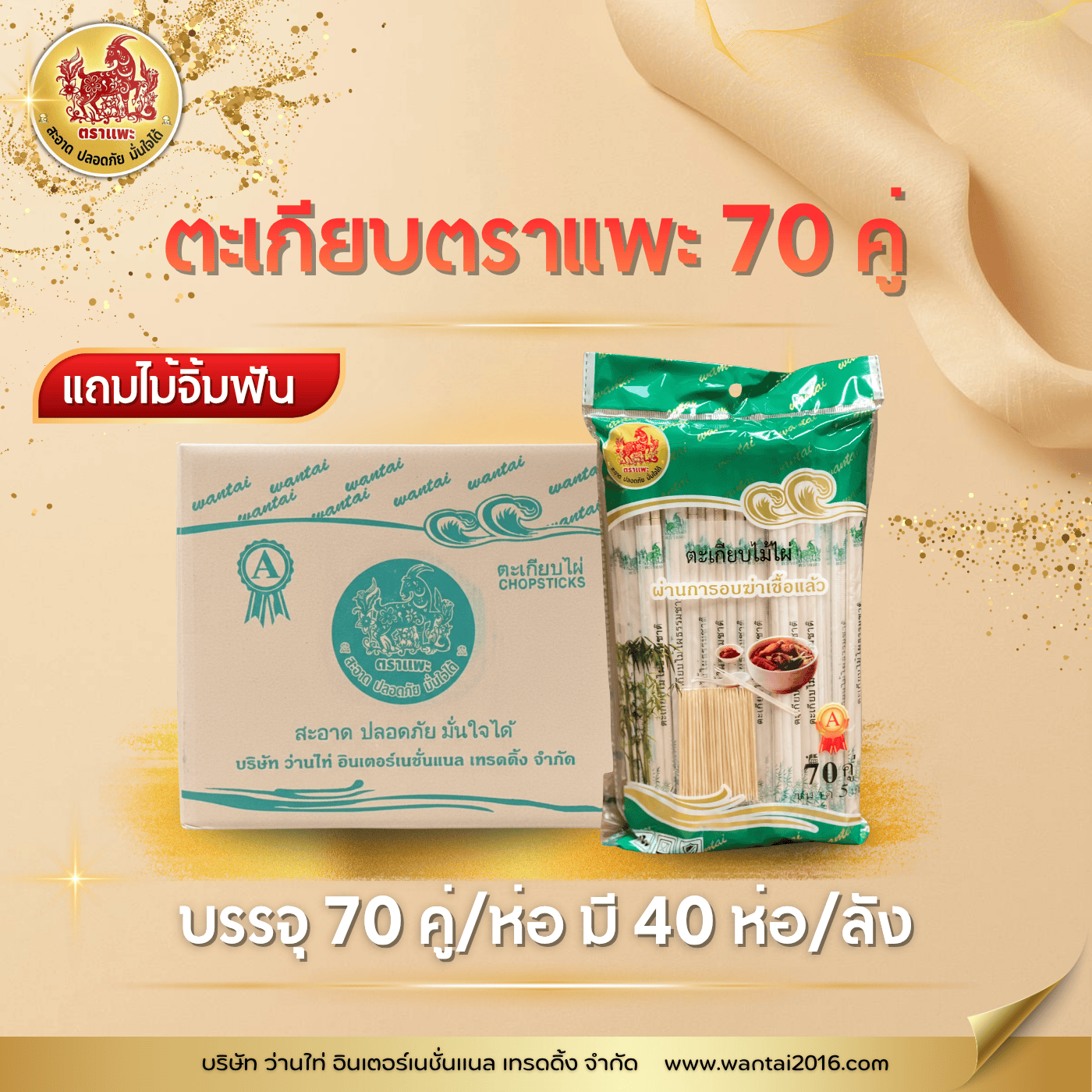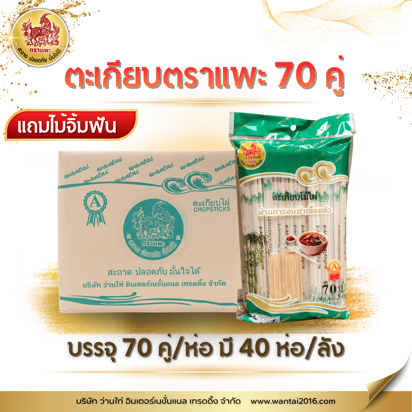 ตะเกียบไม้แพะเขียว แถมไม้จิ้มฟัน บรรจุ : 70คู่ / ห่อ (40ห่อ/ลัง) ขนาด ยาว 22 ซ.ม หนา 5 มม. ตะเกียบไม้ไผ่ธรรมชาติ ใช้ครั้งเดียว ใช้คีบอาหาร สะดวกในการพกพา สะอาดปลอดภัย มีพลาสติกห่อหุ้ม ไม่ทำให้เกิดอันตรายต่อสุขภาพ ผลิตจากไม้ไผ่ ไม่มีสารปนเปื้อน ปลอดภัยใช้กับอาหารได้