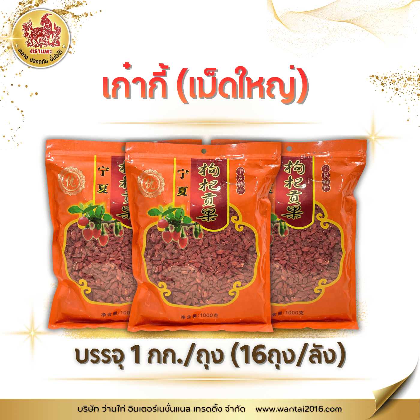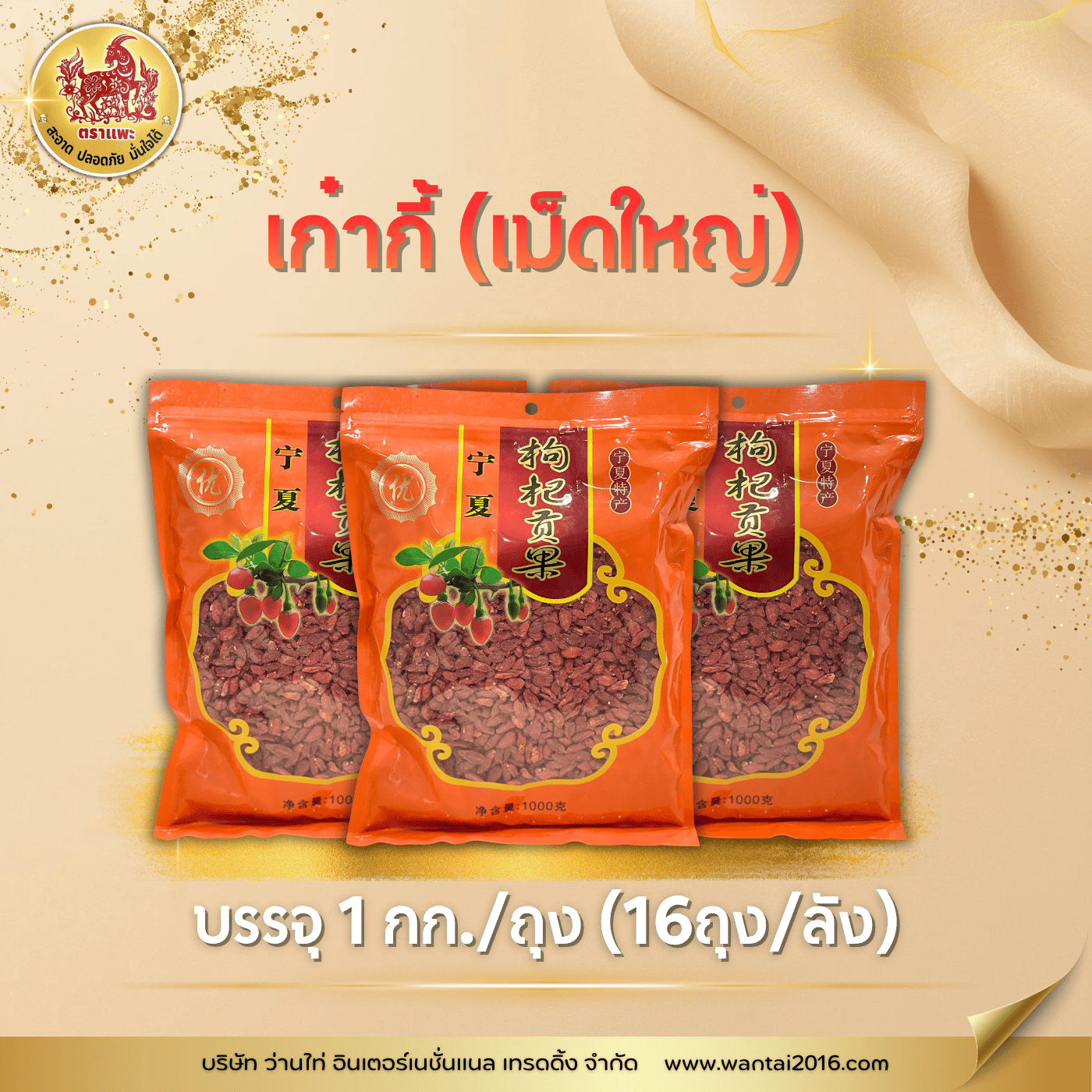 เก๋ากี้ตราแพะ บรรจุ 3 กิโลกรัม /ถุง สรรพคุณ : ช่วยบำรุงสายตา และป้องกันแสงสีน้ำเงินที่ทำลายดวงตา อุดมไปด้วยวิตตามินซี ช่วยเสริมสร้างภูมิคุ้มกันให้แก่ร่างกาย มีสารต้านอนุมูลอิสระที่ช่วยต้านมะเร็ง ช่วยลดระดับน้ำตาลในเลือดเสริมสร้างสมดุลของอินซูลิน บำรุงตับ ป้องกันการลุกลามของโรคไขมันพอกตับ