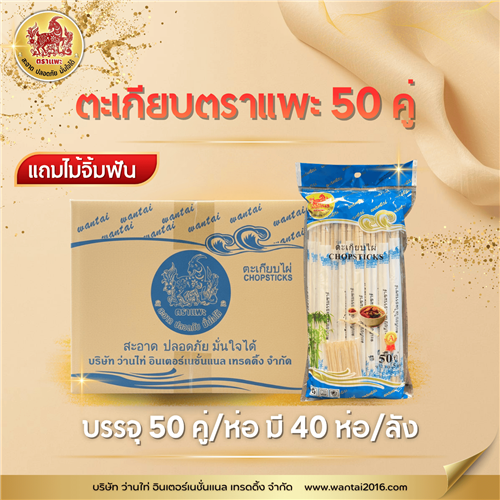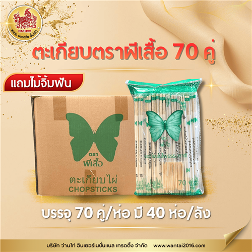 ตะเกียบไม้ตราผีเสื้อ (แถมไม้จิ้มฟัน) บรรจุ : 50คู่/ห่อ (40ห่อ/ลัง) ขนาด ยาว ...