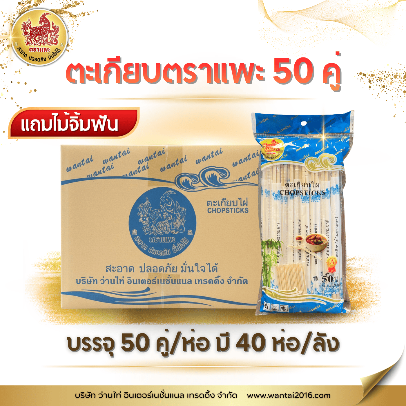 ตะเกียบไม้ไผ่ตราแพะฟ้า แถมไม้จิ้มฟัน บรรจุ : 50คู่ / ห่อ (40ห่อ/ลัง) ขนาด ยาว 22 ซ.ม หนา 5 มม. ตะเกียบไม้ไผ่ธรรมชาติ ใช้ครั้งเดียว ใช้คีบอาหาร สะดวกในการพกพา สะอาดปลอดภัย มีพลาสติกห่อหุ้ม ไม่ทำให้เกิดอันตรายต่อสุขภาพ ผลิตจากไม้ไผ่ ไม่มีสารปนเปื้อน ปลอดภัยใช้กับอาหารได้
