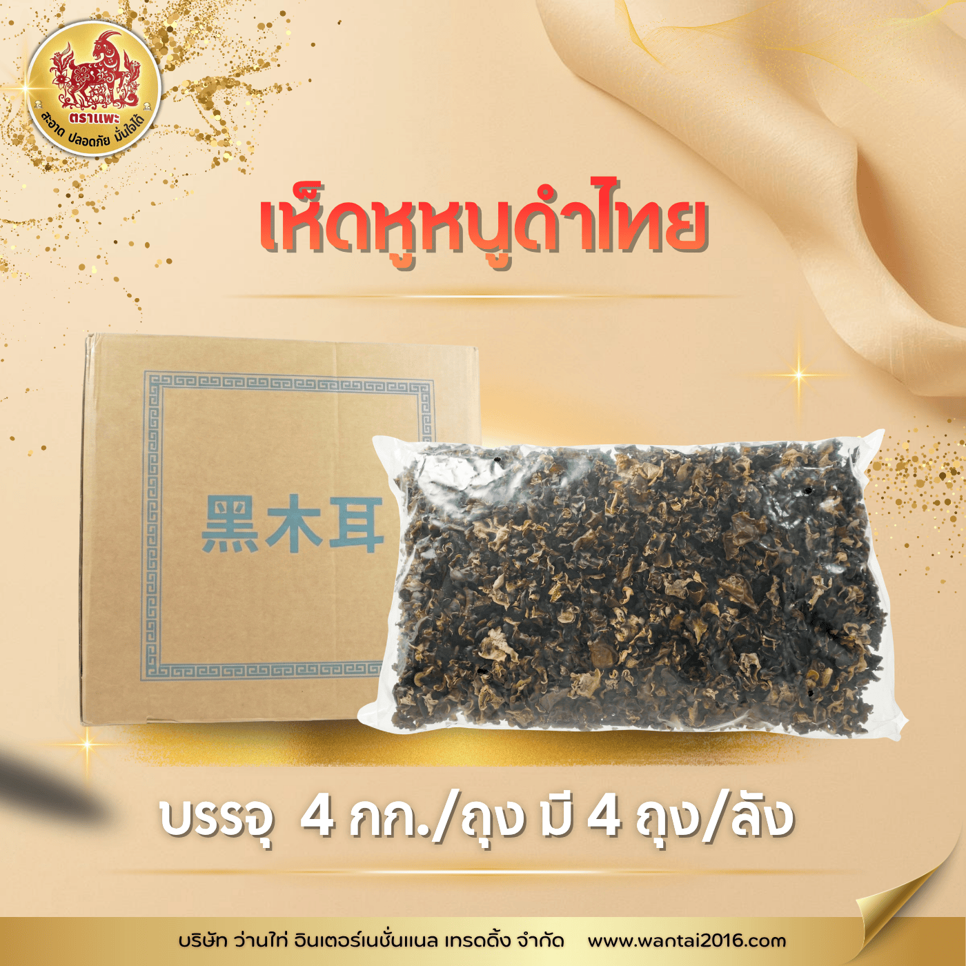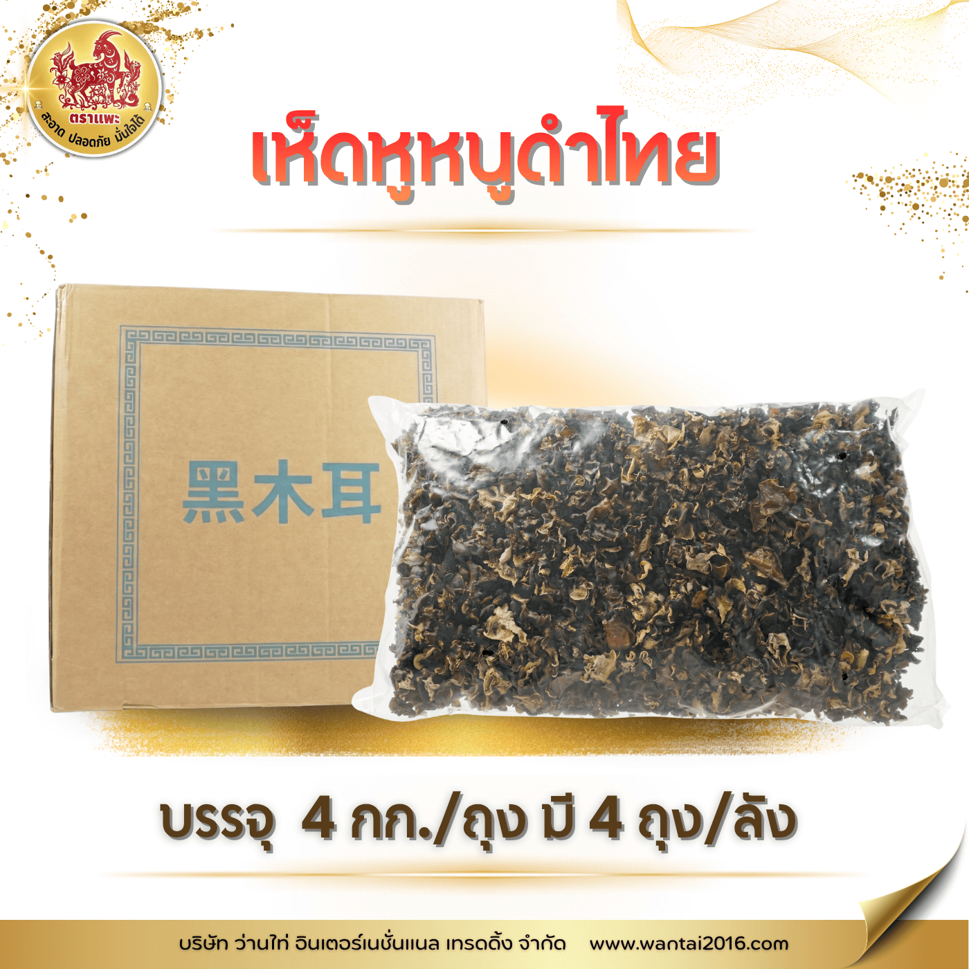 เห็ดหูหนูดำไทย บรรจุ 4 กิโลกรัม/ถุง (4ถุง/มัด) สรรพคุณ : เป็นยาบำรุงเลือดและพลัง มีส่วนประกอบคล้ายกับเห็ดหูหนูขาว คุณสมบัติทางยา ไม่ร้อน ไม่เย็น รสหวาน วิ่งเส้นลม-ปราณไต (สีดำเป็นสีของไต) เป็นเห็ดที่ได้รับพลังยินสะสม ทำให้ลดความร้อน หรือเกิดความเย็นแก่กระเพาะอาหารได้ วิธีใช้ : นำไปล้างน้ำให้สะอาด และ แช่น้ำร้อนอย่างน้อย 10 – 15 นาที จึงนำไปประกอบอาหาร เช่น ผัด ต้ม แกง ยำ