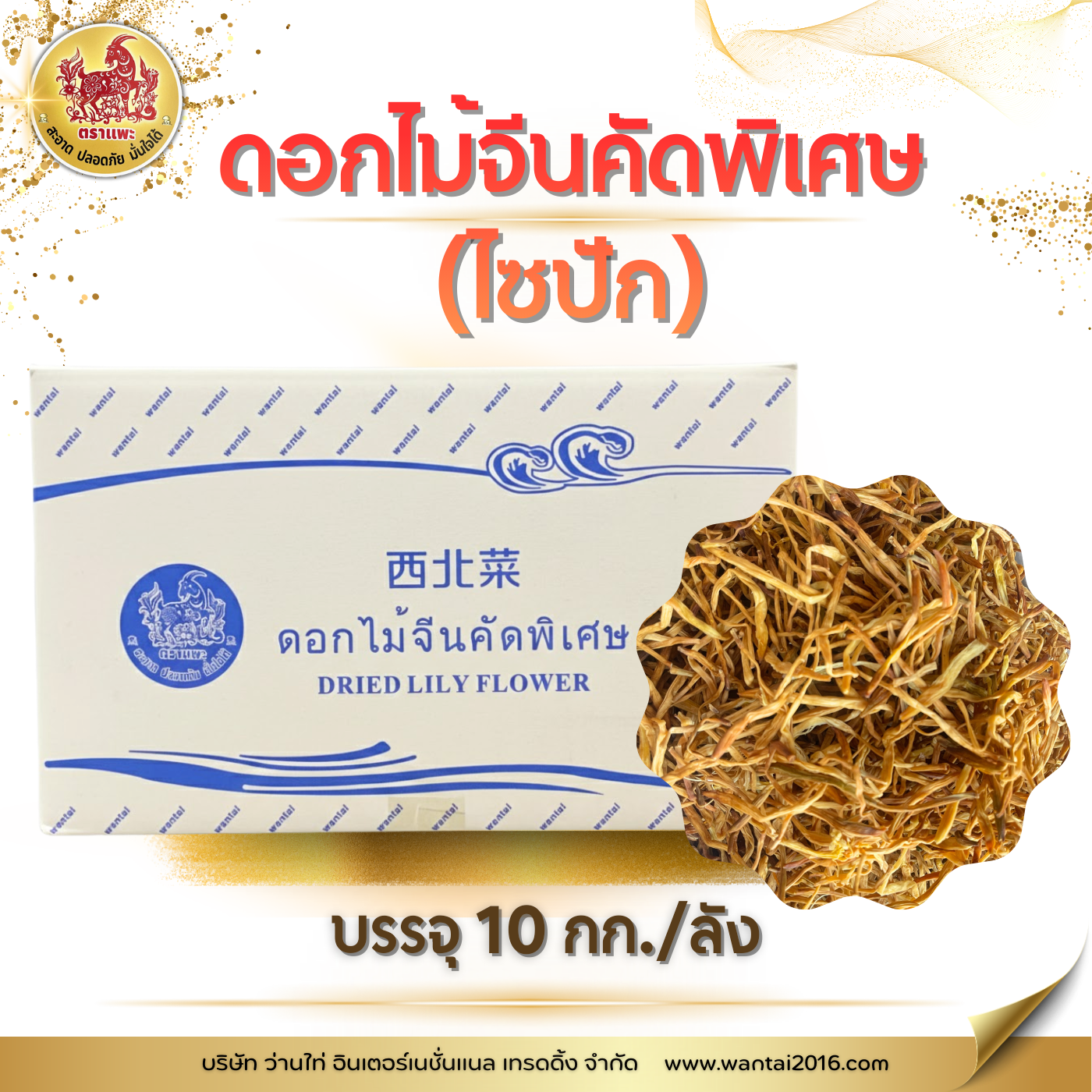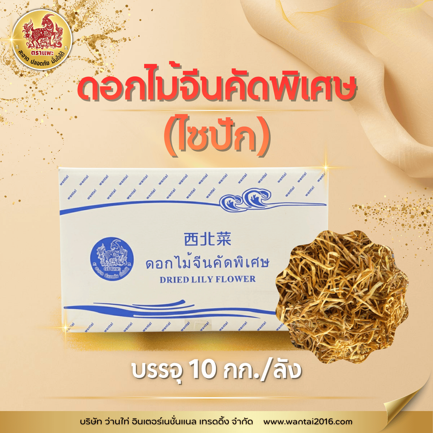 ไซปัก บรรจุ 10 กิโลกรัม/ลัง ไซปักหรือดอกไม้จีนคัดพิเศษ สรรพคุณ : ช่วยบำรุงเลือด บำรุงหัวใจ เลือดลมเดินสะดวก มดลูกแข็งแรง ช่วยบรรเทาเลือดกำเดาไหลจากจมูกแห้งเกินไป - ช่วยบำรุงเส้นเอ็นดีไม่ปวดเมื่อย - แก้ร้อนใน มีไข้ ถอนพิษ บรรเทาอาการปอดบวม ต่อมน้ำลายอักเสบ ฝีหนอง ริดสีดวงทวาร - บรรเทาอาการไอเป็นเลือด วิธีใช้ : ล้างด้วยน้ำสะอาด แล้วจึงนำไปประกอบอาหาร เช่น น้ำซุปกระดูกหมูใส่ดอกไม้จีน ผัดโป๊ยเซียน ต้มจืดวุ้นเส้นหมูสับใส่ไซปัก